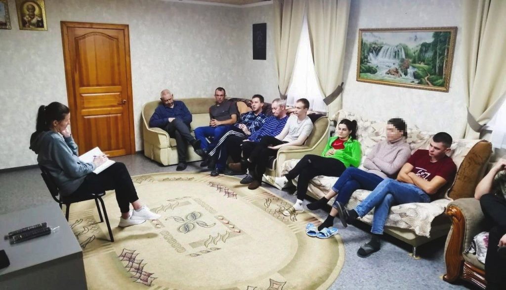 - При поступлении, зависимые проходят процедуру детоксикации организма и приступает к работе с психотерапевтом, принимая участие в индивидуальных или групповых занятиях.